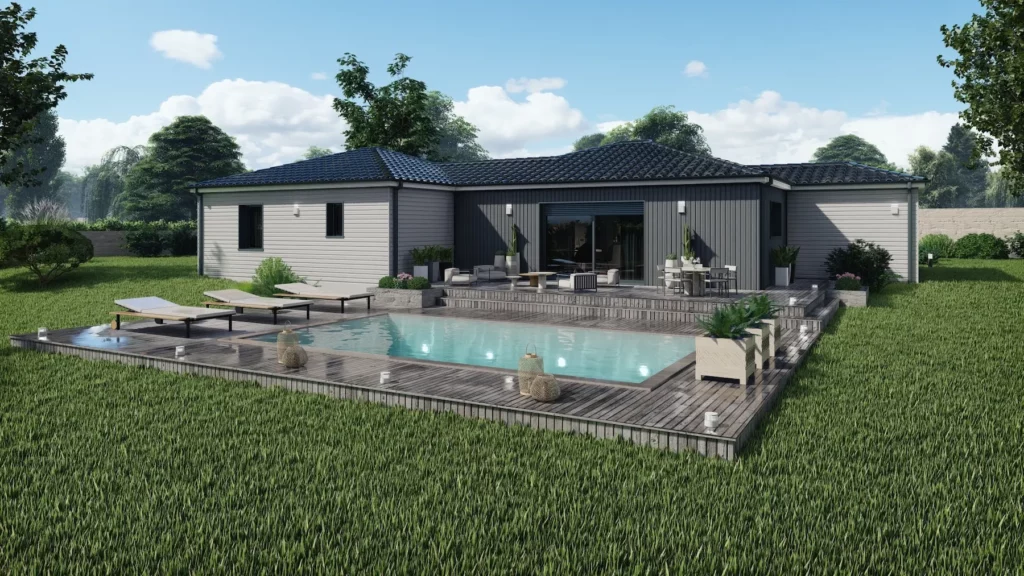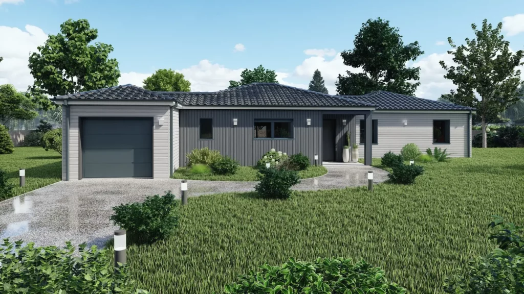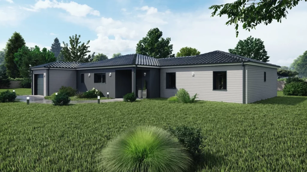 Le modèle Maisons Aliénor Bois Mathis est une maison de plain-pied au style moderne se distinguant par son agencement en L et par sa douceur marquée par la luminosité apportée à l’intérieur de votre maison. L’aménagement de cette Maison bois Mathis conçu par notre équipe de dessinateurs a tout pour vous séduire !