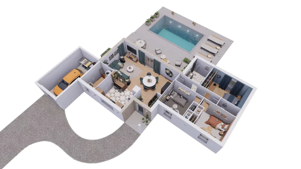 Chaque version de la Maisons Aliénor Bois Mathis a été soigneusement conçue pour répondre aux besoins de nos clients. Chaque maison est personnalisable et peut être adaptée à votre style de vie. Vous pouvez choisir entre des plans ouverts ou fermés, des chambres à coucher multiples ou simples, une cuisine ouverte ou fermée, avec ou sans garage etc.