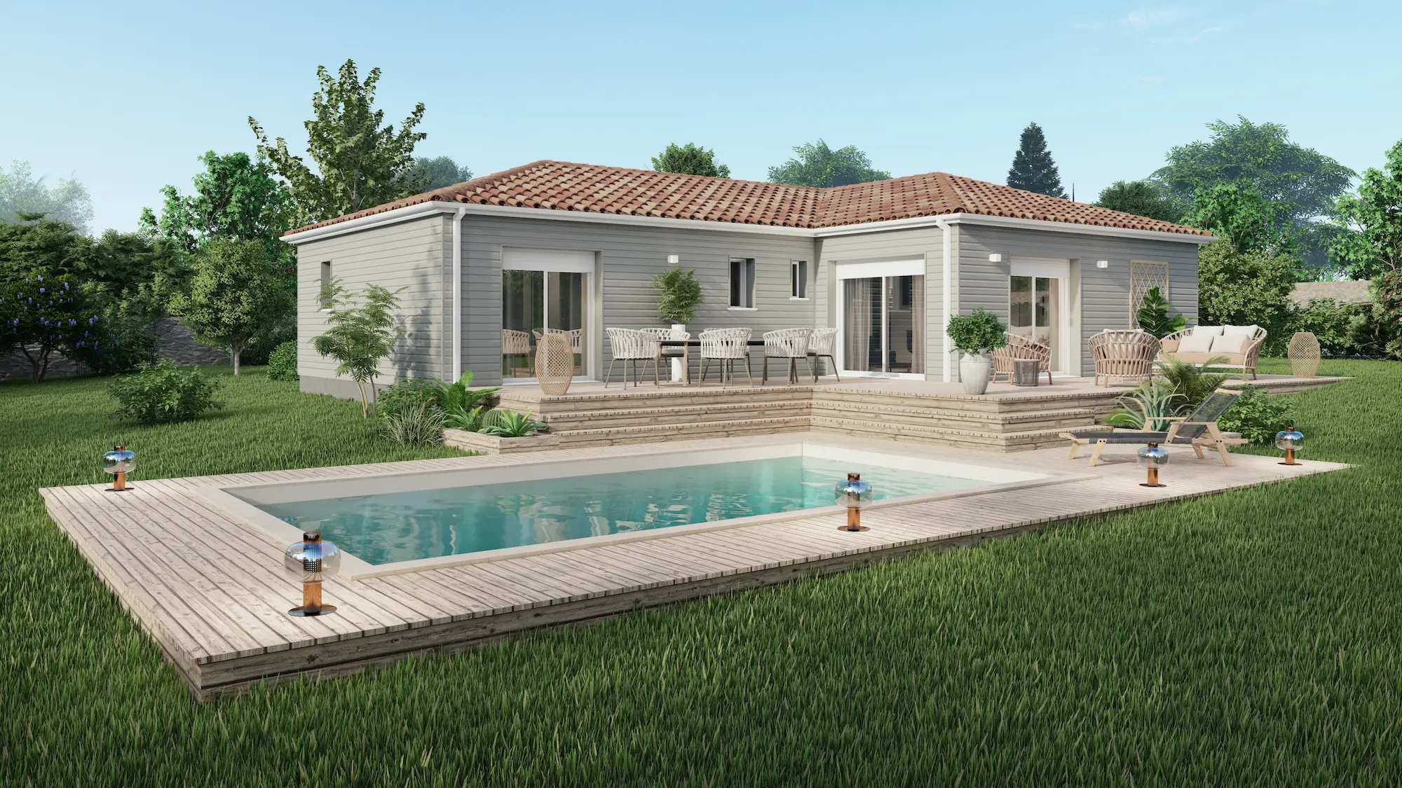 Spécialiste de la construction de maisons en Dordogne, Corrèze & Charente, Maisons Aliénor vous présente son modèle de maison de plain-pied au style moderne.
