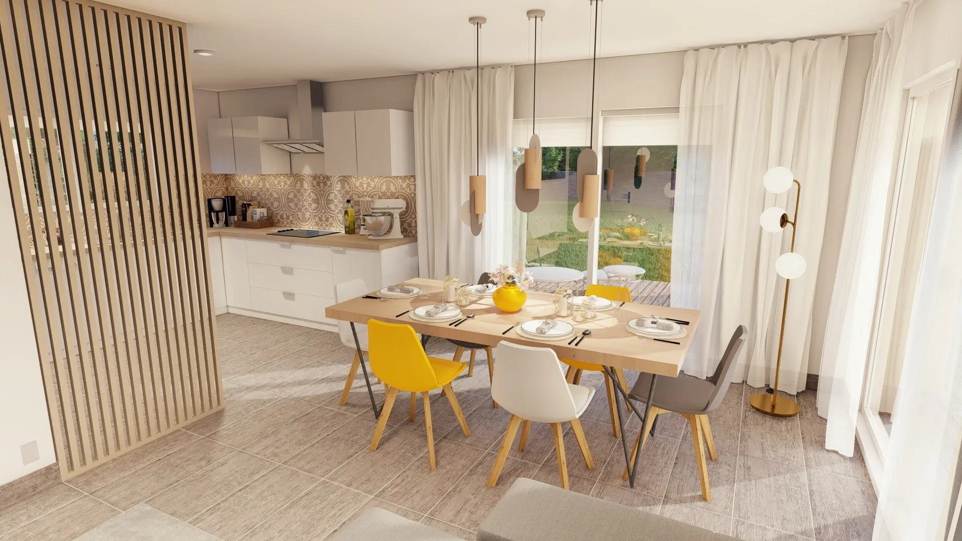 Une cuisine ouverte sur un espace de vie particulièrement lumineux et spacieux,