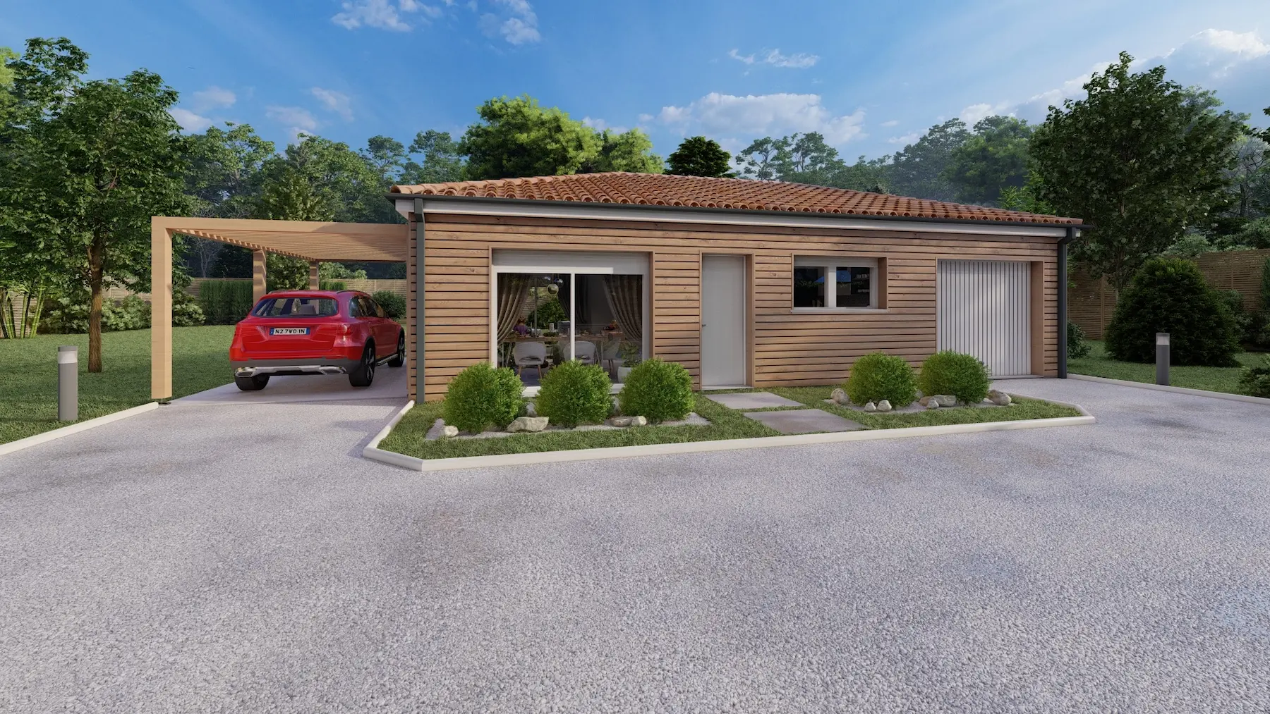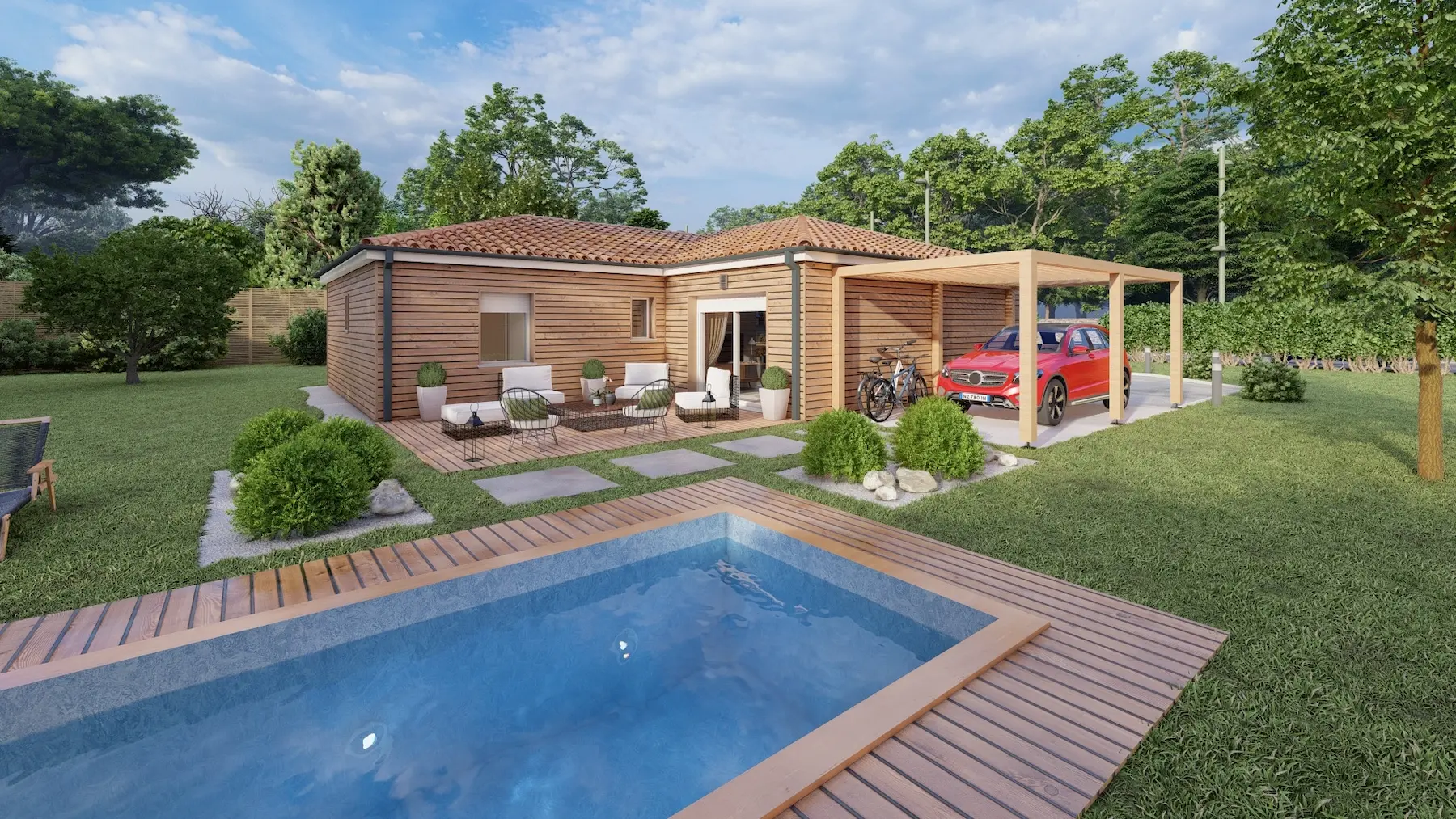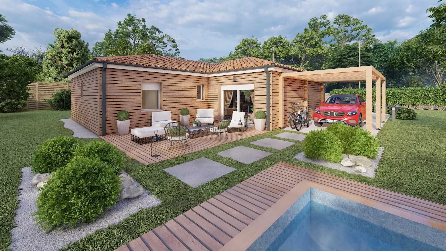 Le modèle Maisons Aliénor Bois Coline est une maison de plain-pied au style moderne se distinguant par son agencement en L et par sa douceur marquée par la luminosité apportée à l’intérieur de votre maison. L’aménagement de cette Maison bois Coline conçu par notre équipe de dessinateurs a tout pour vous séduire !