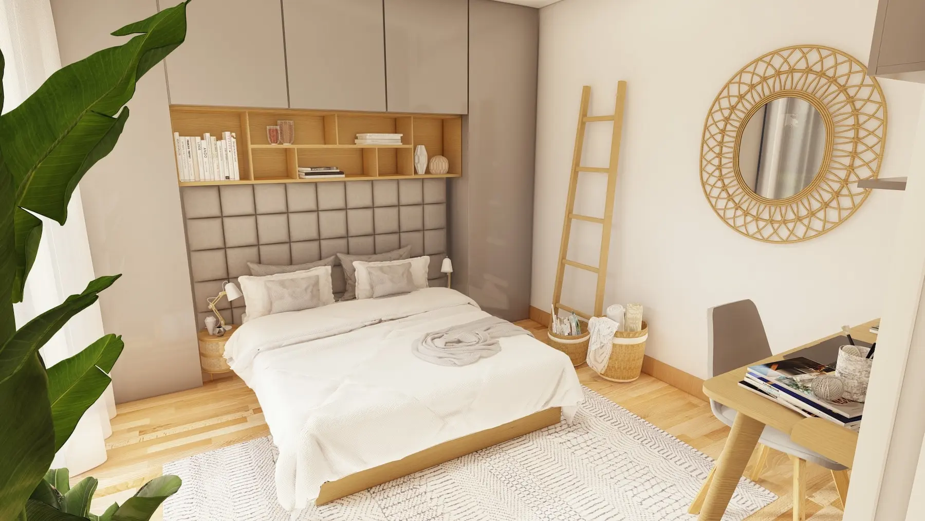 Le modèle Studio Bois Anaya offre une architecture design en L particulièrement moderne. Ce studio bois moderne et responsable peut facilement devenir votre petit coup de cœur grâce à son agencement astucieusement conçue par notre équipe de dessinateurs.