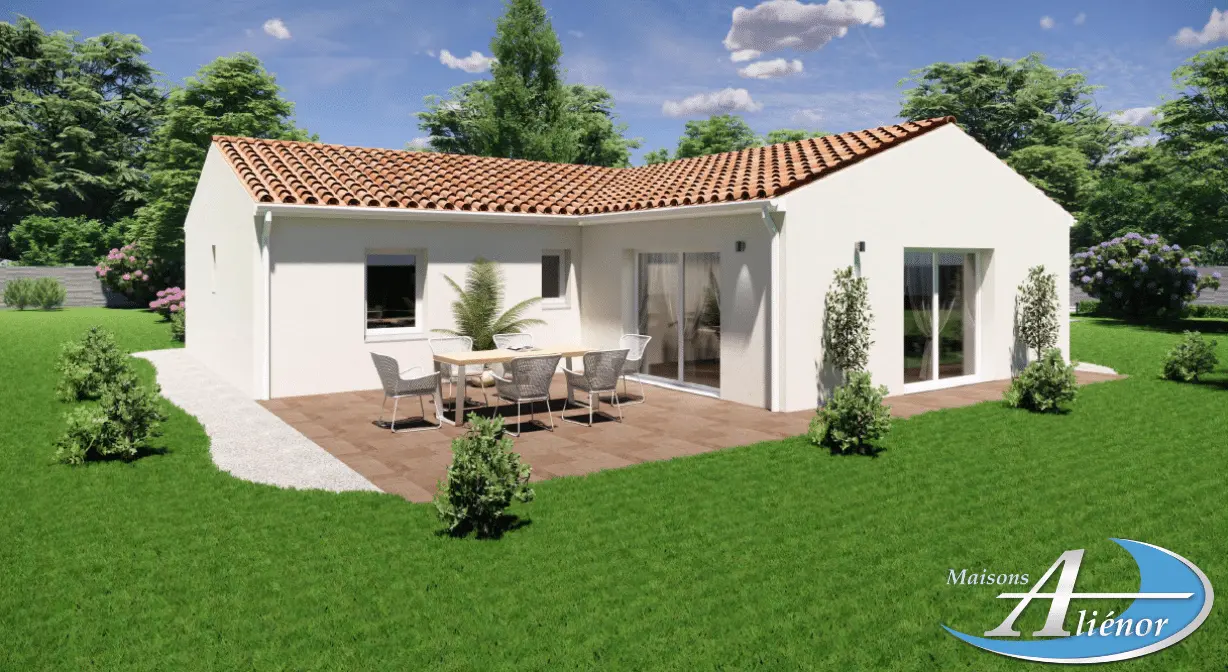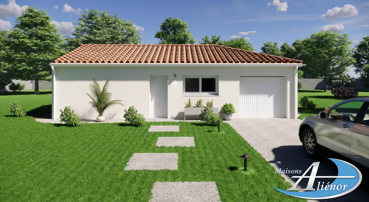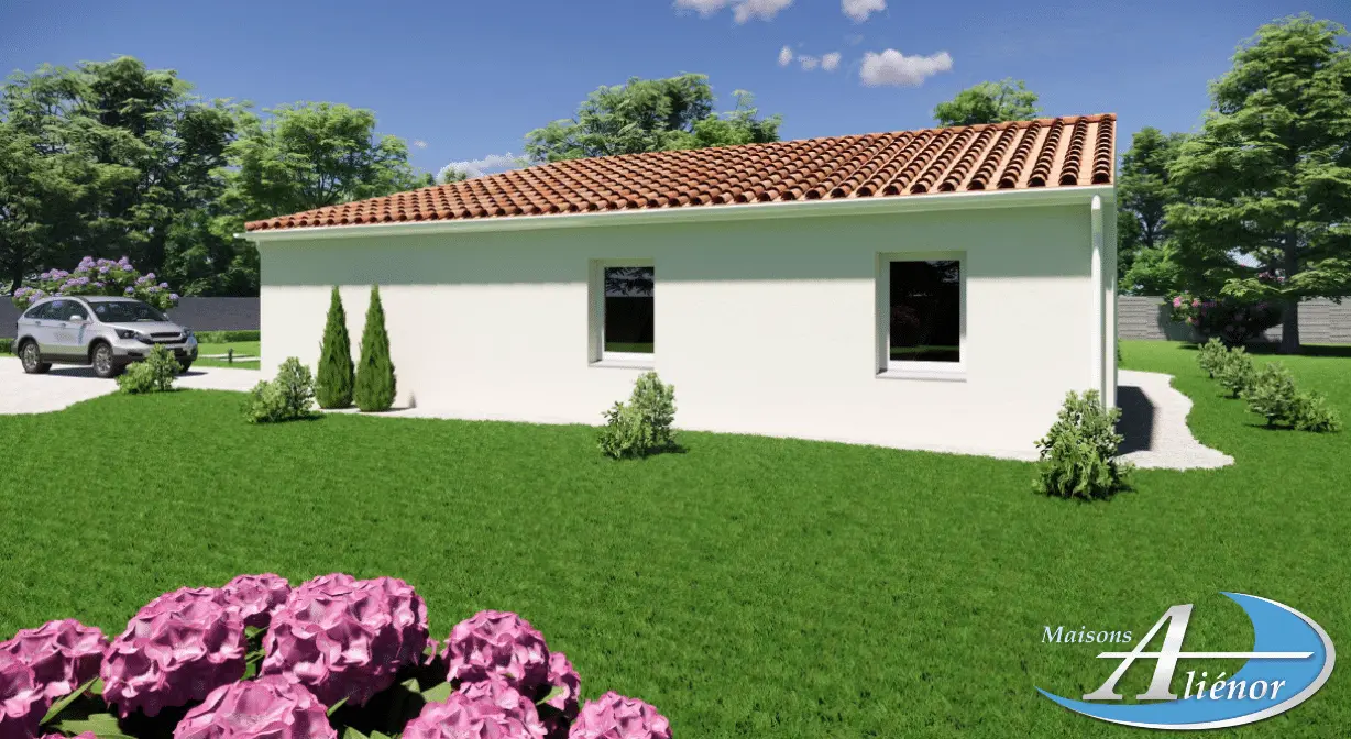 Spécialiste de la construction de maisons en Dordogne, Corrèze & Charente, Maisons Aliénor vous présente son modèle de maison d’une superficie de 99.15 m², de plain-pied, généreuse, contemporaine et lumineuse, largement ouverte sur l’extérieur.