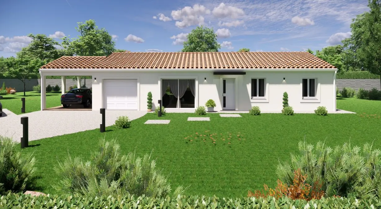 Ce modèle de maison plain-pied saura vous charmer ! Cette maison moderne généreuse, contemporaine et lumineuse, largement ouverte sur l’extérieur se compose de deux espaces bien séparés permettant de distinguer les pièces de jour et celles de nuit.
