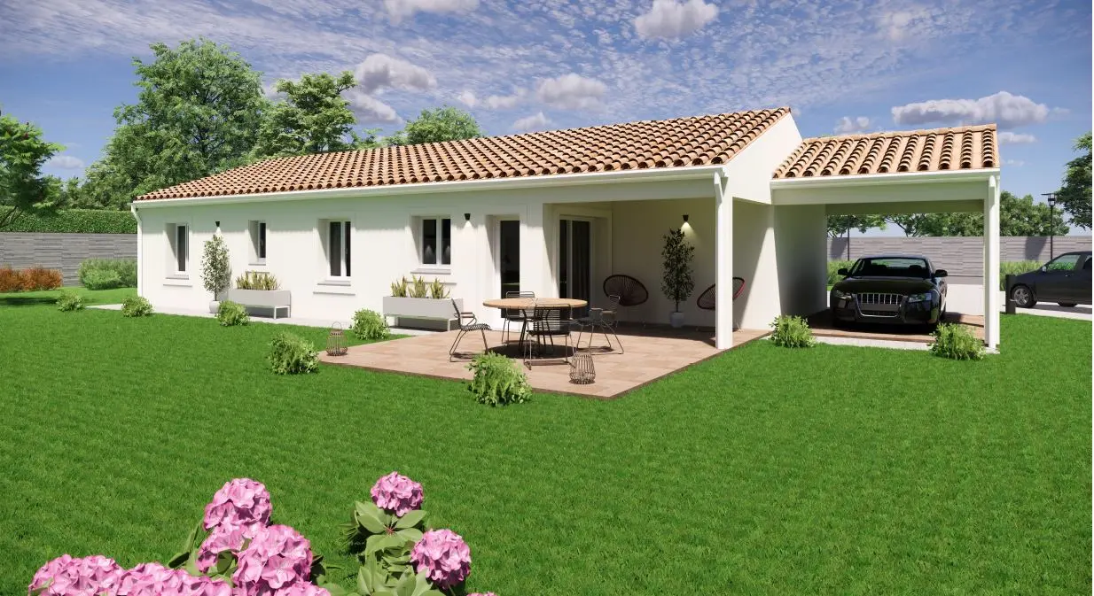 Spécialiste de la construction de maisons en Dordogne, Corrèze & Charente, Maisons Aliénor vous présente son modèle de maison d’une superficie de 90.55 m², de plain-pied, généreuse, contemporaine et lumineuse, largement ouverte sur l’extérieur.