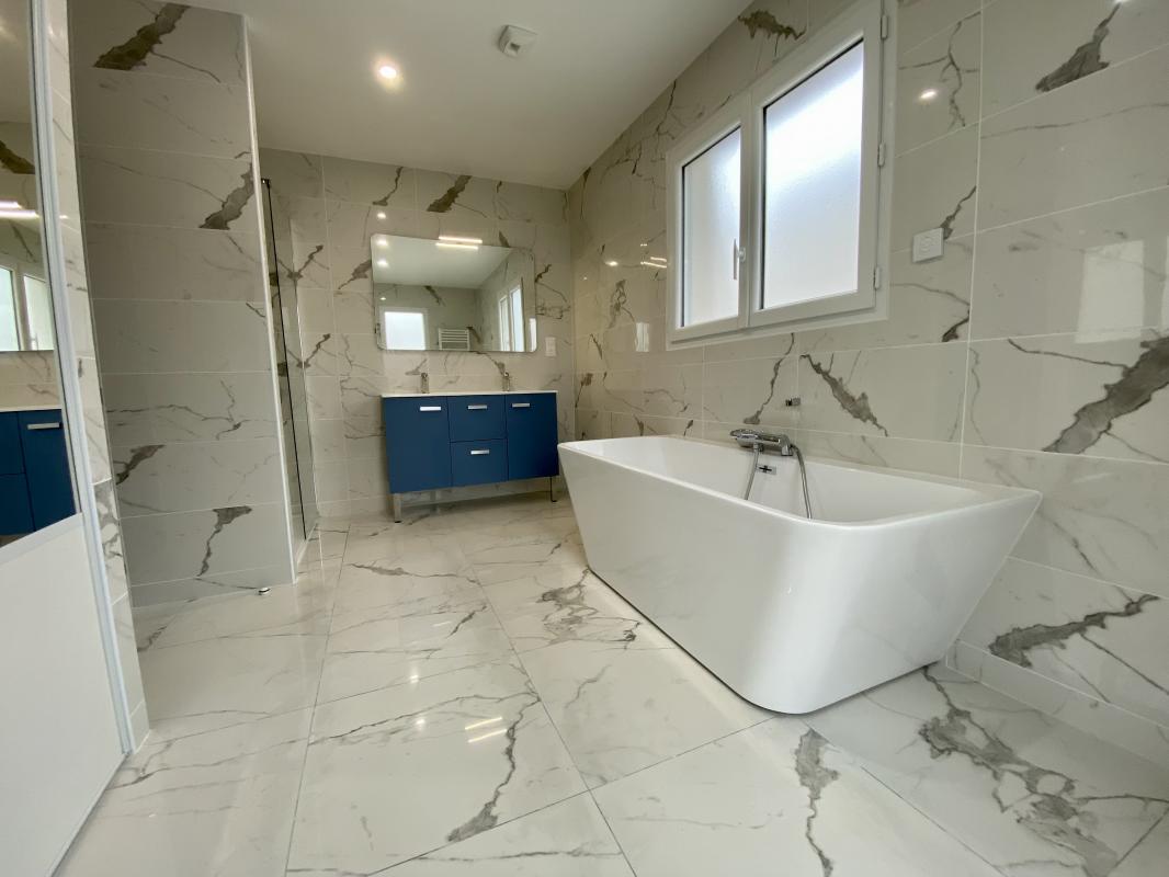 • Salle de bains moderne : douche à l’italienne, double vasque, sèche-serviettes