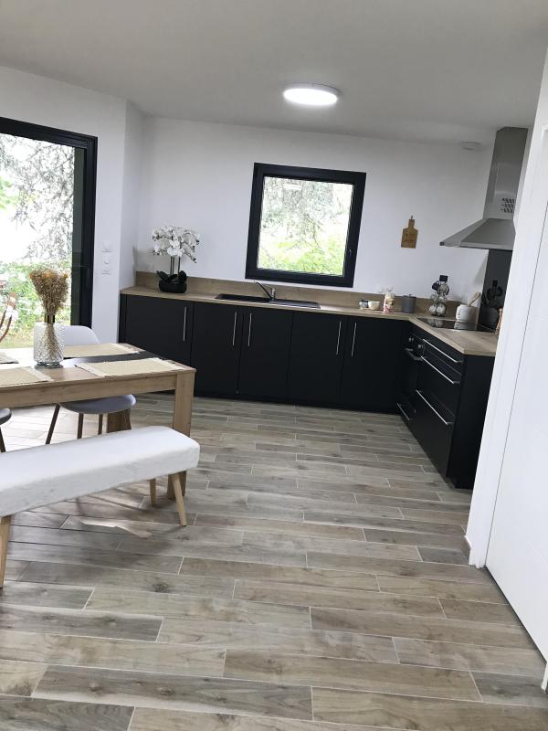 La maison répond aux normes RE2020, elle est équipée d’une pompe à chaleur et de volets roulants électriques.