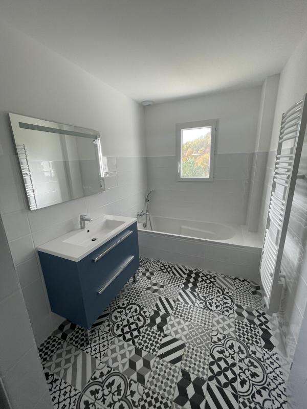 Cette maison comprend un salon séjour spacieux et lumineux avec cuisine ouverte, 3 chambres avec placards intégrés, une salle de bains, un WC indépendant et une buanderie.